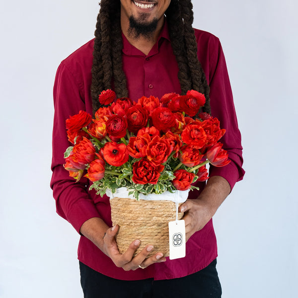 At Bloom Boom, roses stand out in our flowers in the basket collections. They're not just flowers; they're a core element for arranging flowers in a basket. Our range spans from subtle beige tones to vivid, passionate pinks. Each hue captures a mood, an emotion. Our Santa Monica flower shop prioritizes quality and variety. Don't miss out. Explore the full rose assortment in our catalog. Let Bloom Boom be your first choice for rose-filled basket bouquets. Experience the beauty and versatility of our roses today.